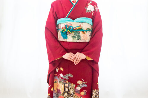 こんにちは。 今日は新しく加わった振袖の紹介です♪ 落ち着いた赤と古典的な柄が素敵な振袖は 帯や帯揚げ、帯締めで 雰囲気も変えることができそうです♪ 小物を変えたコーディネートも おいおい、紹介できればと思います。 落ち…